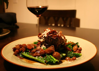 I made our traditional pink crepes and then we exchanged gifts.My sister and I had made a little cape for Beatrice. She had been asking for one for months because Swiper, of Dora fame, has one. So I was all excited to give it to her. I had the camera ready to capture her expression. Lately when she opens a gift, she charmingly puts her hands to her mouth and says, "Oh gosh."