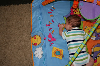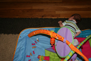 When I left the room, Theo was here on his play mat: