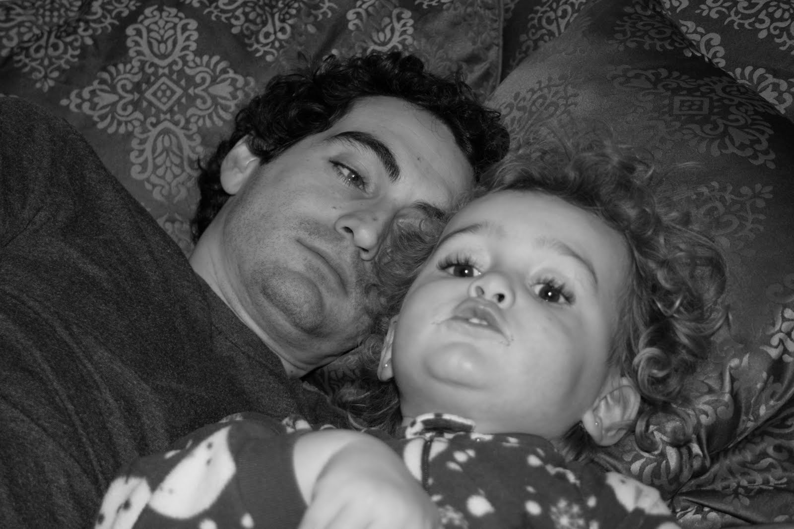 2 things to note in this photo: check out their chins. A related story: when Beatrice was born, the first thing all of our visitors told us was how much she looked like Cory and how she totally had his chin. Both Cory and I never realized he had such a distinct chin. For months he couldn't understand what people meant. Finally I took a profile photo of the both of them to demonstrate. This photo is another clear illustration of the chin. Another thing in this photo, although its hard to discern in black and white, is the ring of chocolate around my girl's mouth. I think its permanent.