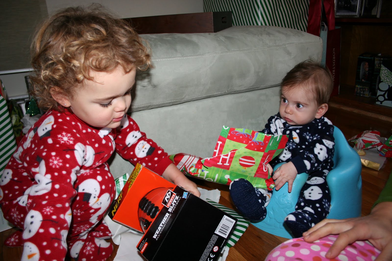 Poor Theo is not looking like he's enjoying his first Christmas. Luckily we got this shot the next morning when he was well rested.
