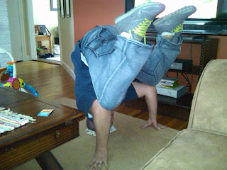 That's Johnny B. doing "the tripod" in response to Dave's "tripod" the night before.
